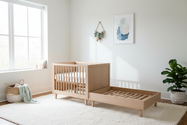 Lits évolutifs qui grandissent avec votre enfant. Du berceau au lit junior, design intemporel et qualité durable pour accompagner le sommeil de votre enfant pendant des années.